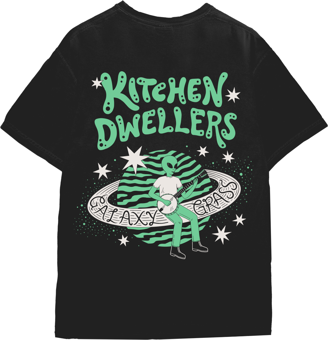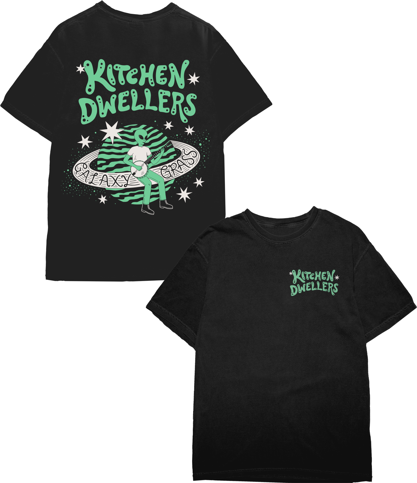 "Galaxy Grass Space" design printed on a black 100% cotton t-shirt.